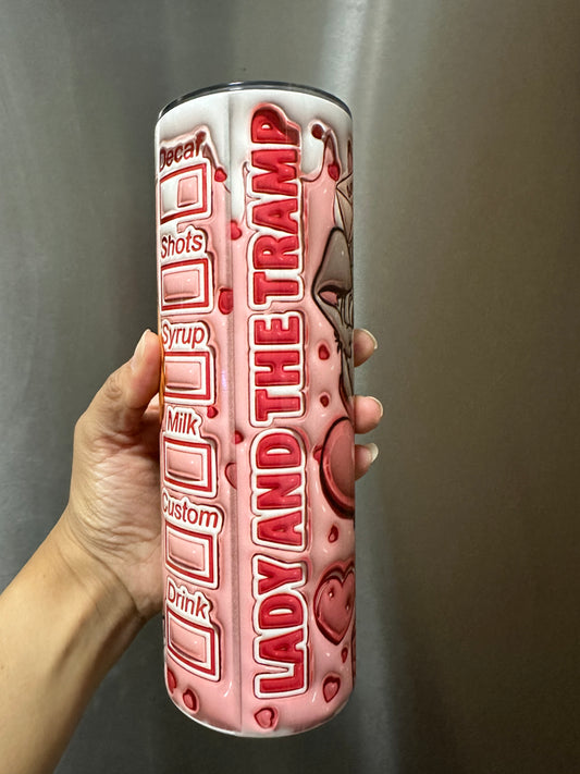 20 oz sublimation 3D tumbler “lady and the tramp Valentine”